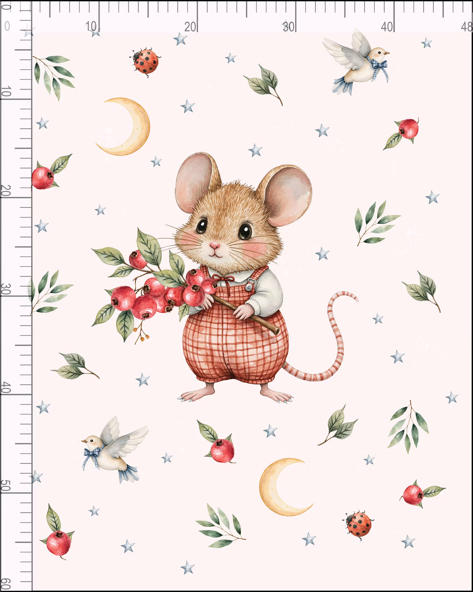 Mus med tyttebær panel French terry På lager Antall: 15 79,- LEGG I HANDLEKURVEN Mus med tyttebærEigenprodusert French TerryMål: 60*48 cm 250 gram pr kvm95% Bomull 5% LycraOeko Tex sertifisertAnbefalt maskinvask på 30 grader.
