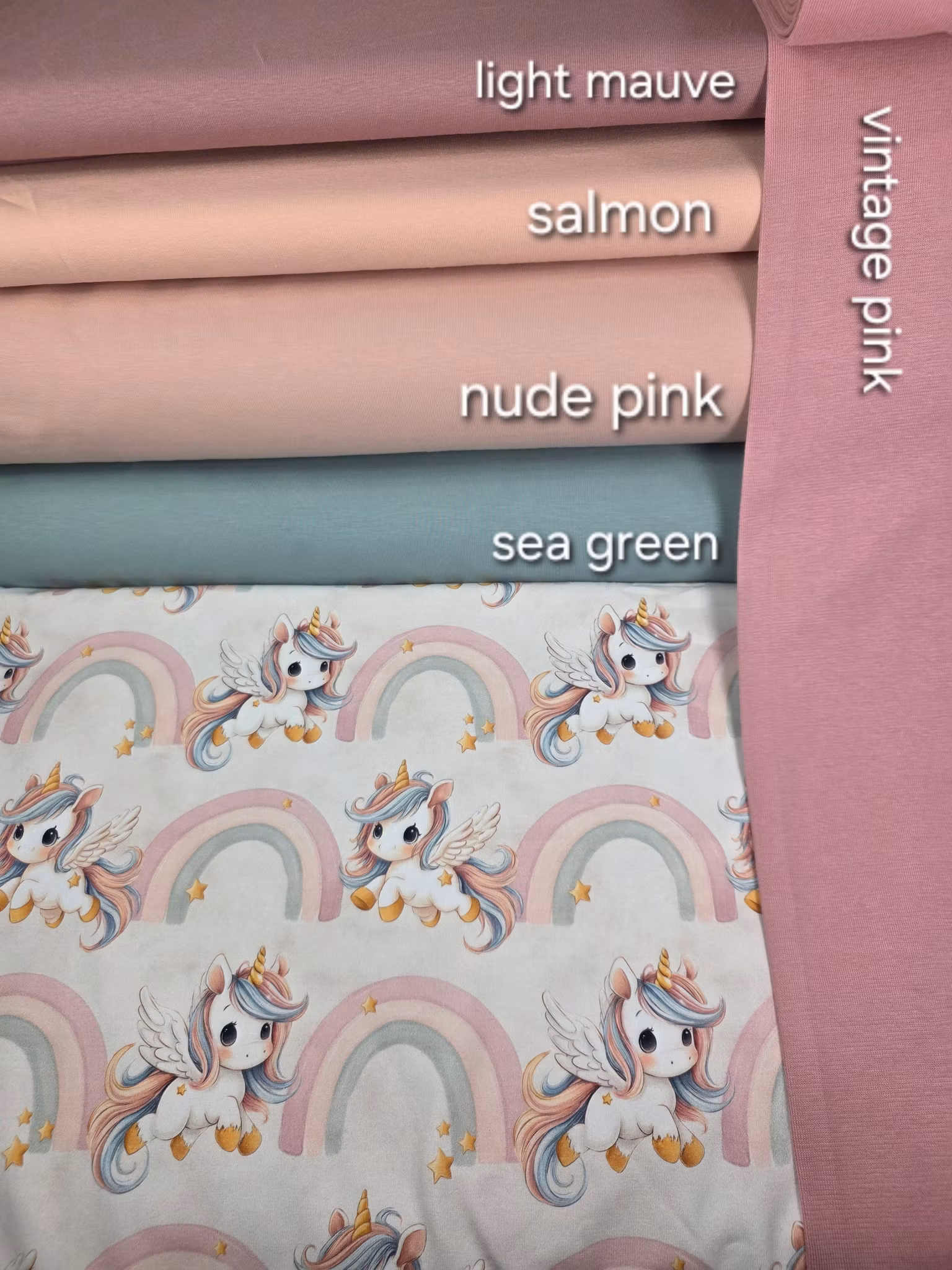 Enhjørning i duse toner jersey På lager Antall: 31 24,- LEGG I HANDLEKURVEN Enhjørning duse tonerEigenprodusert jerseyBredde: 150 cm220 gram pr kvm95% Bomull 5% LycraOeko Tex sertifisertAnbefalt maskinvask på 30 grader.1 = 10 cm2 = 20 cm3 = 30 cmosv.