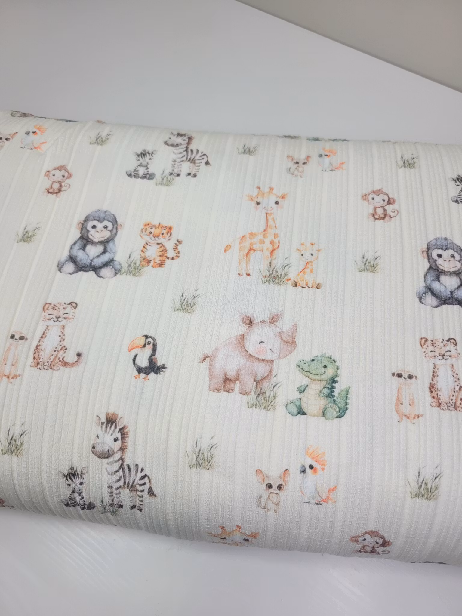 Jungeldyr mini regelmessig ribbjersey På lager Antall: 90 24,- LEGG I HANDLEKURVEN Jungeldyr miniEigenprodusert regelmessig ribbjerseyBredde: 110 cm200 gram pr kvm94% Bomull 6% LycraOeko Tex sertifisertDigital PrintAnbefalt maskinvask på 30 grader.1 = 10 cm2 = 20 cm3 = 30 cmosv.