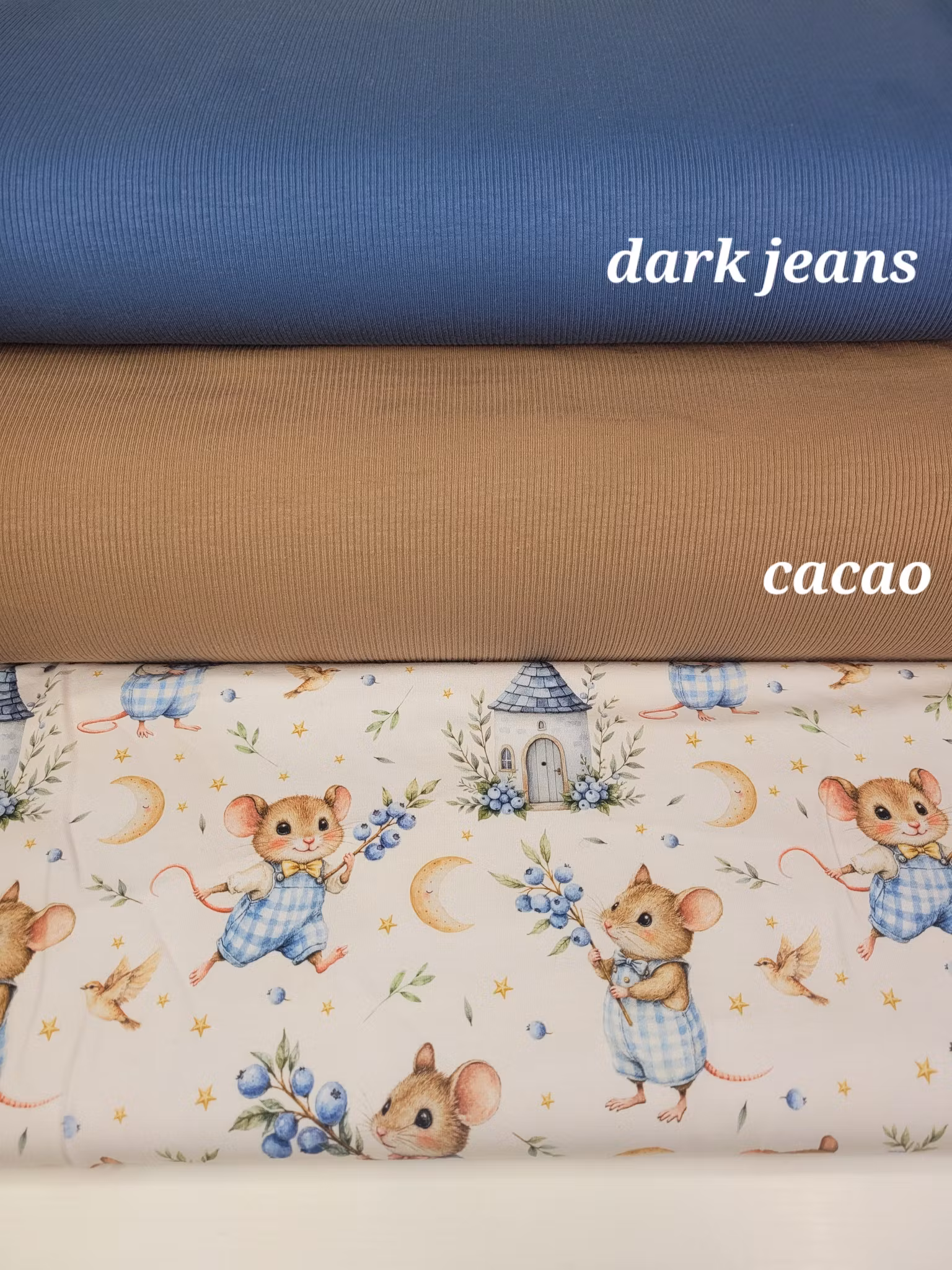 Mus med blåbær jersey På lager Antall: 10 24,- LEGG I HANDLEKURVEN Mus med blåbærEigenprodusert jerseyBredde: 150 cm220 gram pr kvm92% Bomull 8% LycraOeko Tex sertifisertAnbefalt maskinvask på 30 grader.1 = 10 cm2 = 20 cm3 = 30 cmosv.