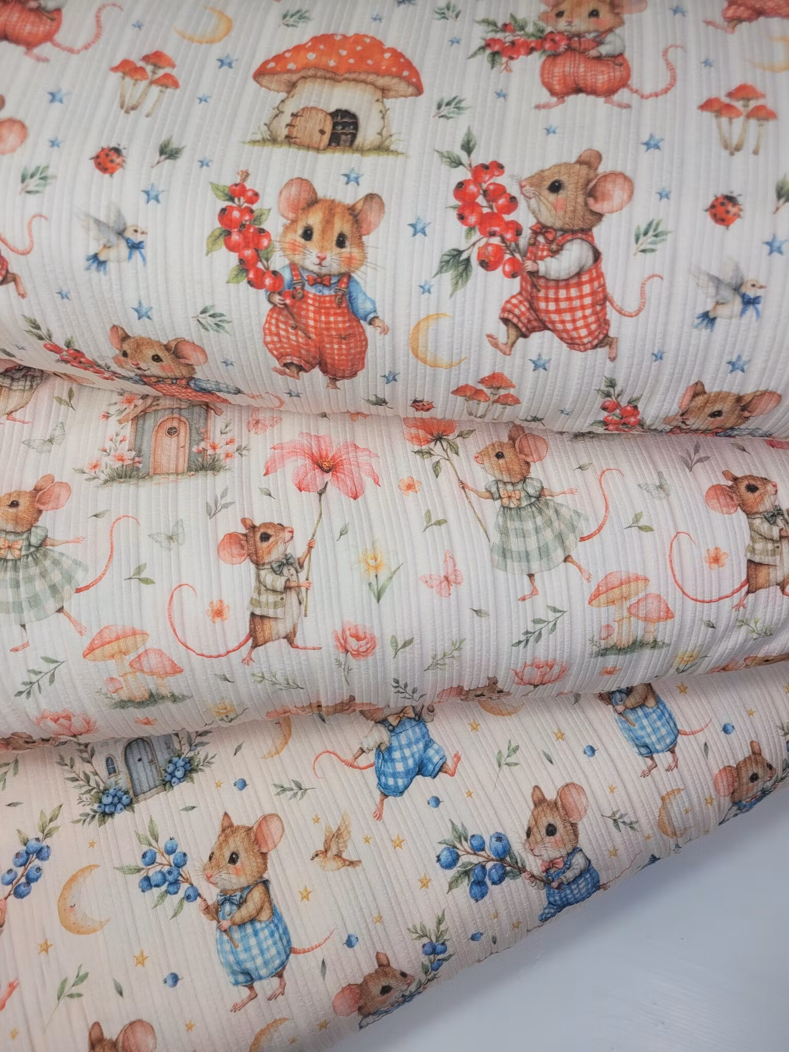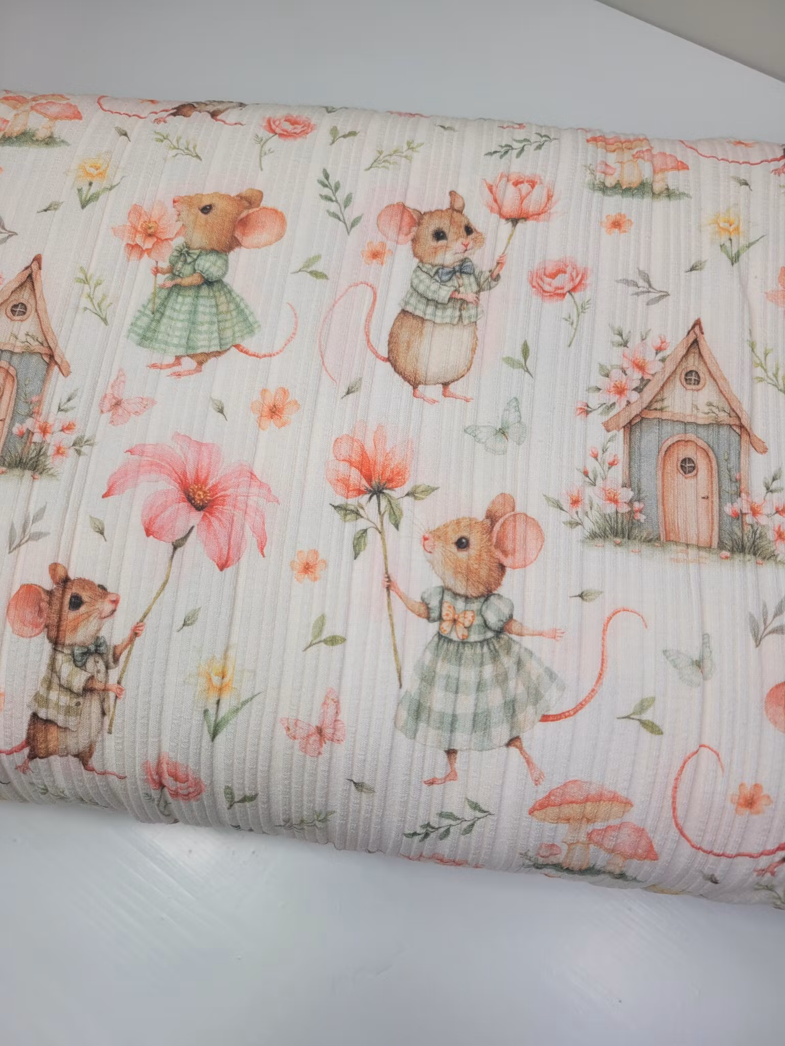 Mus med blomster regelmessig ribbjersey På lager Antall: 61 24,- LEGG I HANDLEKURVEN Mus med blomsterEigenprodusert regelmessig ribbjerseyBredde: 110 cm200 gram pr kvm94% Bomull 6% LycraOeko Tex sertifisertDigital PrintAnbefalt maskinvask på 30 grader.1 = 10 cm2 = 20 cm3 = 30 cmosv.