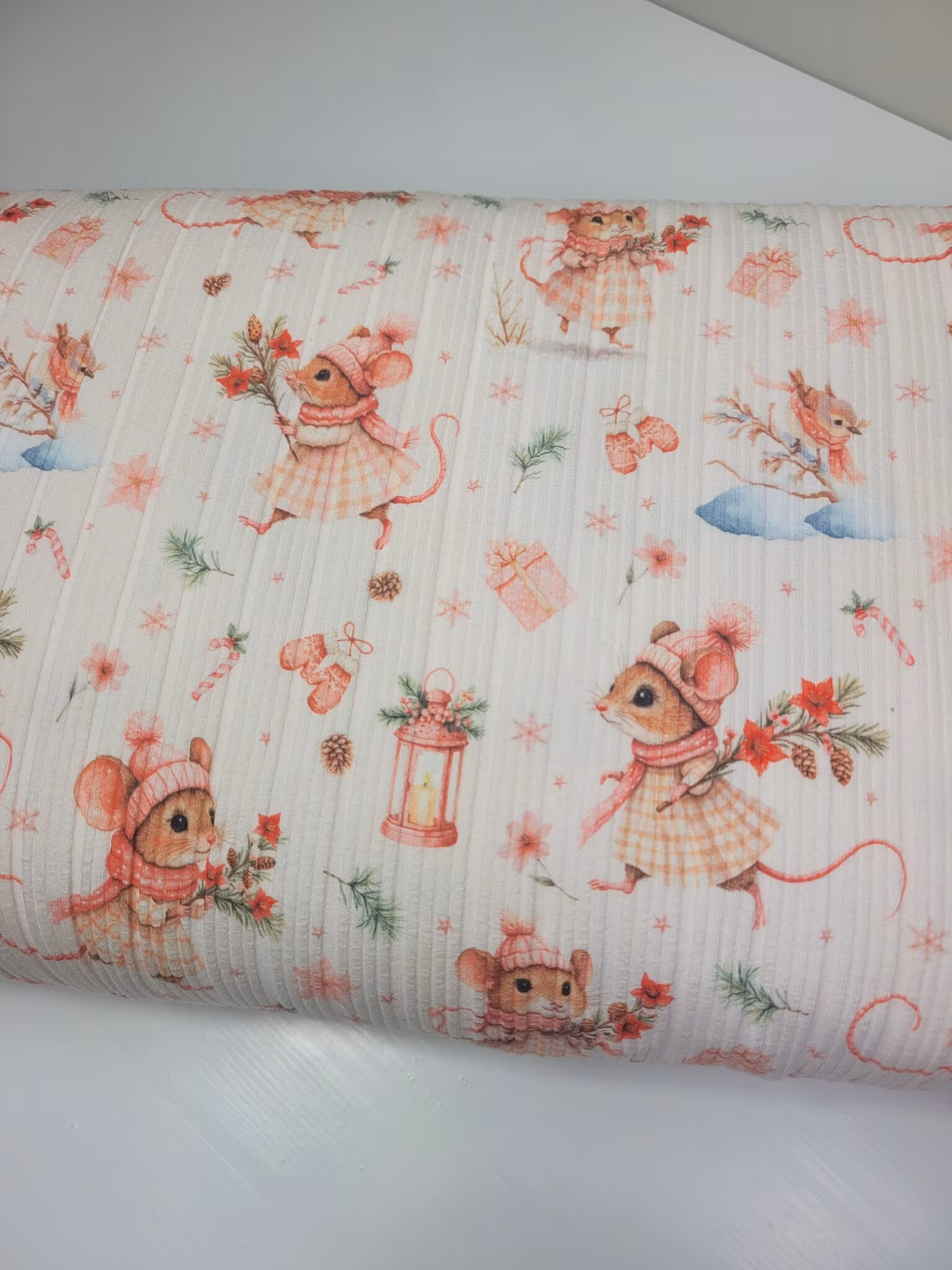 Mus med julestjerne regelmessig ribbjersey På lager Antall: 54 24,- LEGG I HANDLEKURVEN Mus med julestjerneEigenprodusert regelmessig ribbjerseyBredde: 110 cm200 gram pr kvm94% Bomull 6% LycraOeko Tex sertifisertDigital PrintAnbefalt maskinvask på 30 grader.1 = 10 cm2 = 20 cm3 = 30 cmosv.
