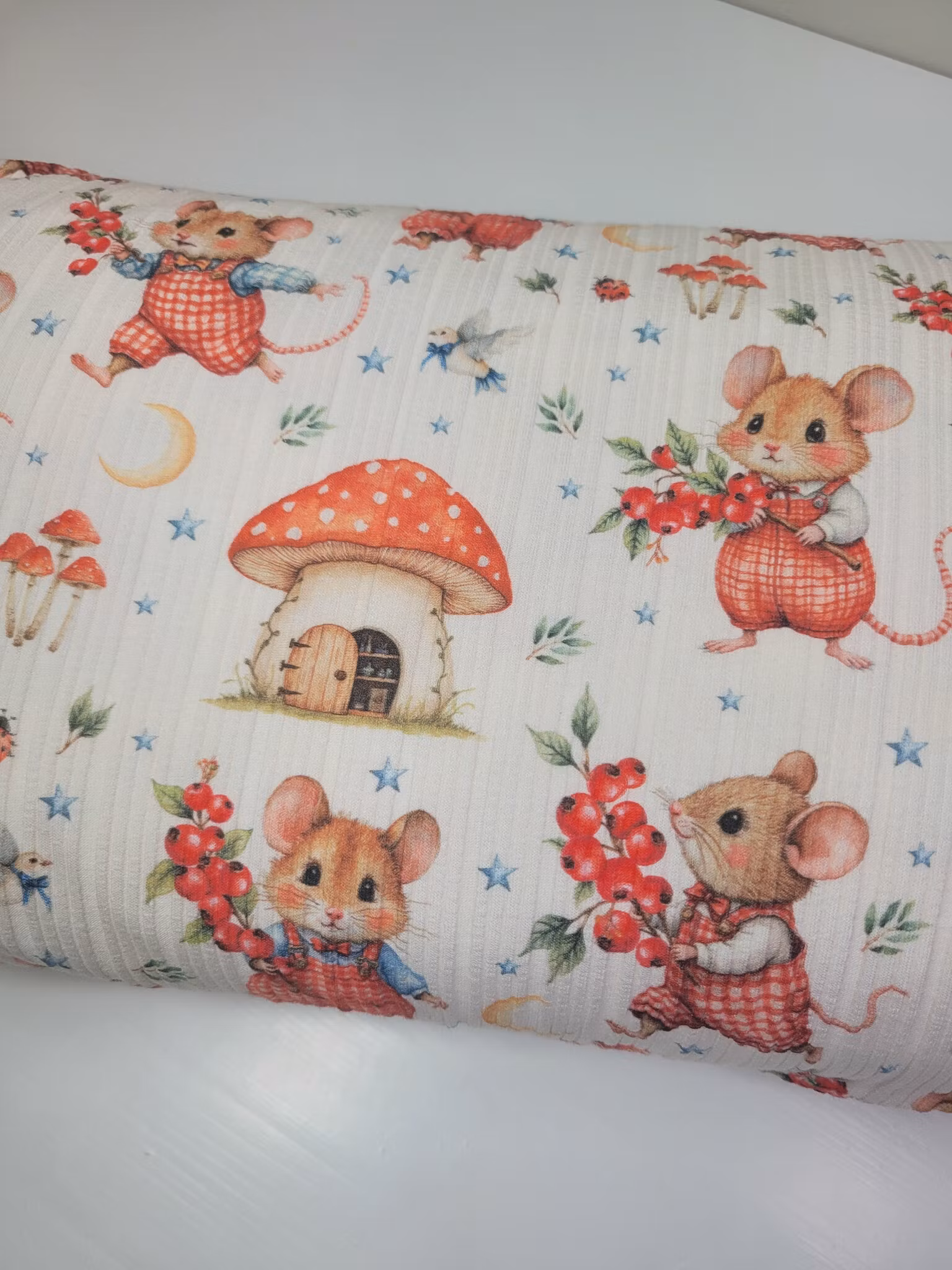 Mus med tyttebær regelmessig ribbjersey På lager Antall: 45 24,- LEGG I HANDLEKURVEN Mus med tyttebærEigenprodusert regelmessig ribbjerseyBredde: 110 cm200 gram pr kvm94% Bomull 6% LycraOeko Tex sertifisertDigital PrintAnbefalt maskinvask på 30 grader.1 = 10 cm2 = 20 cm3 = 30 cmosv.