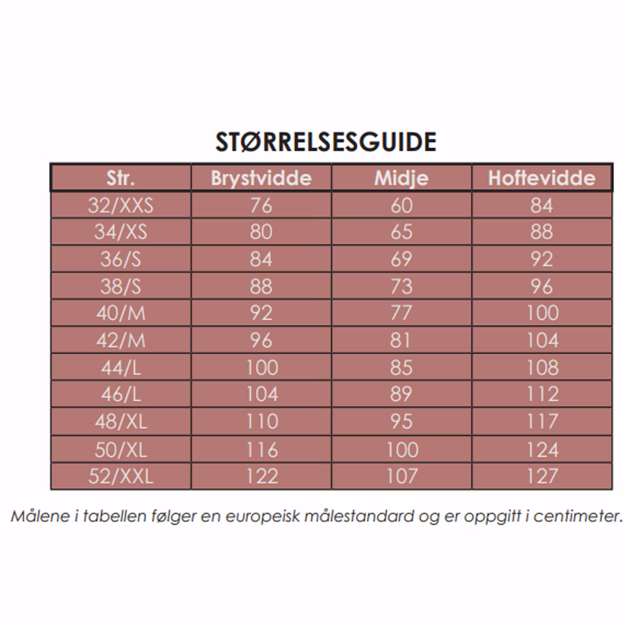 - Størrelsesguide