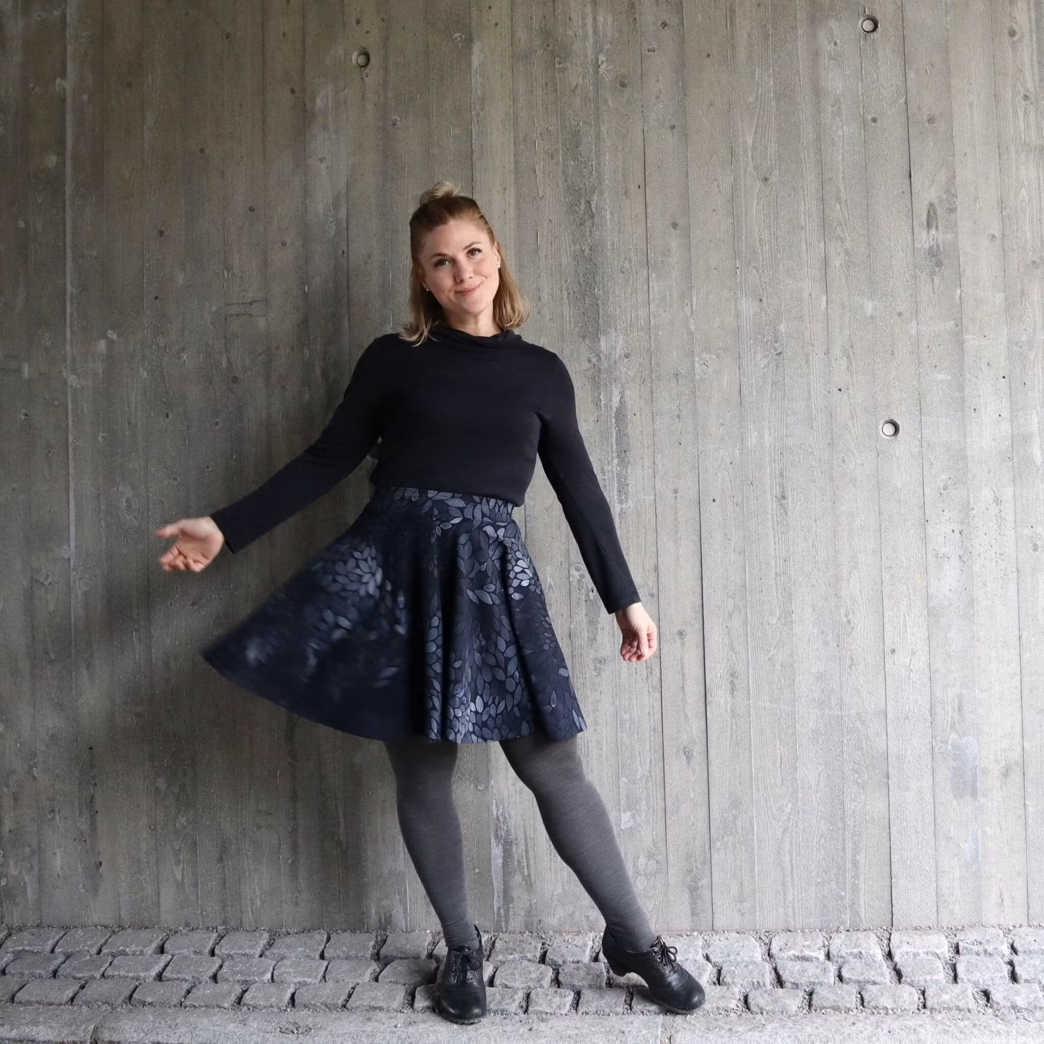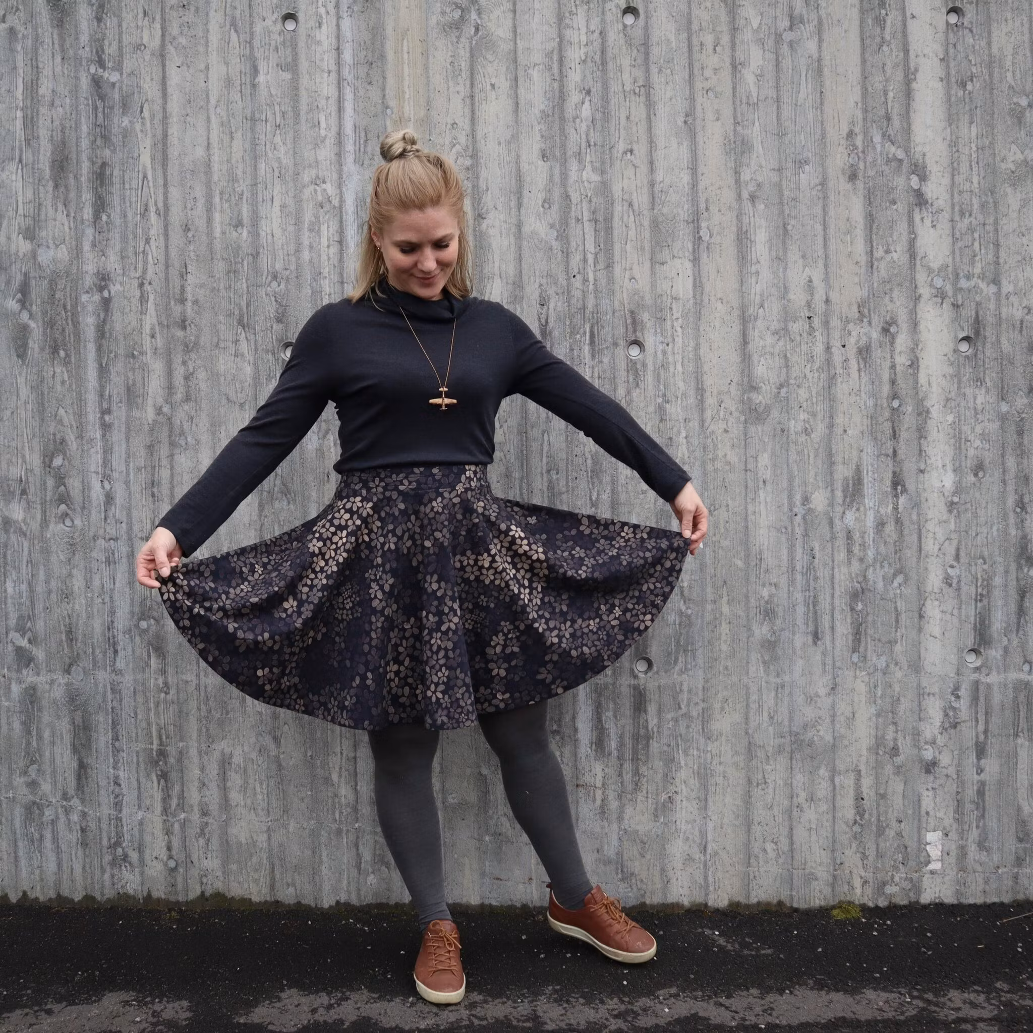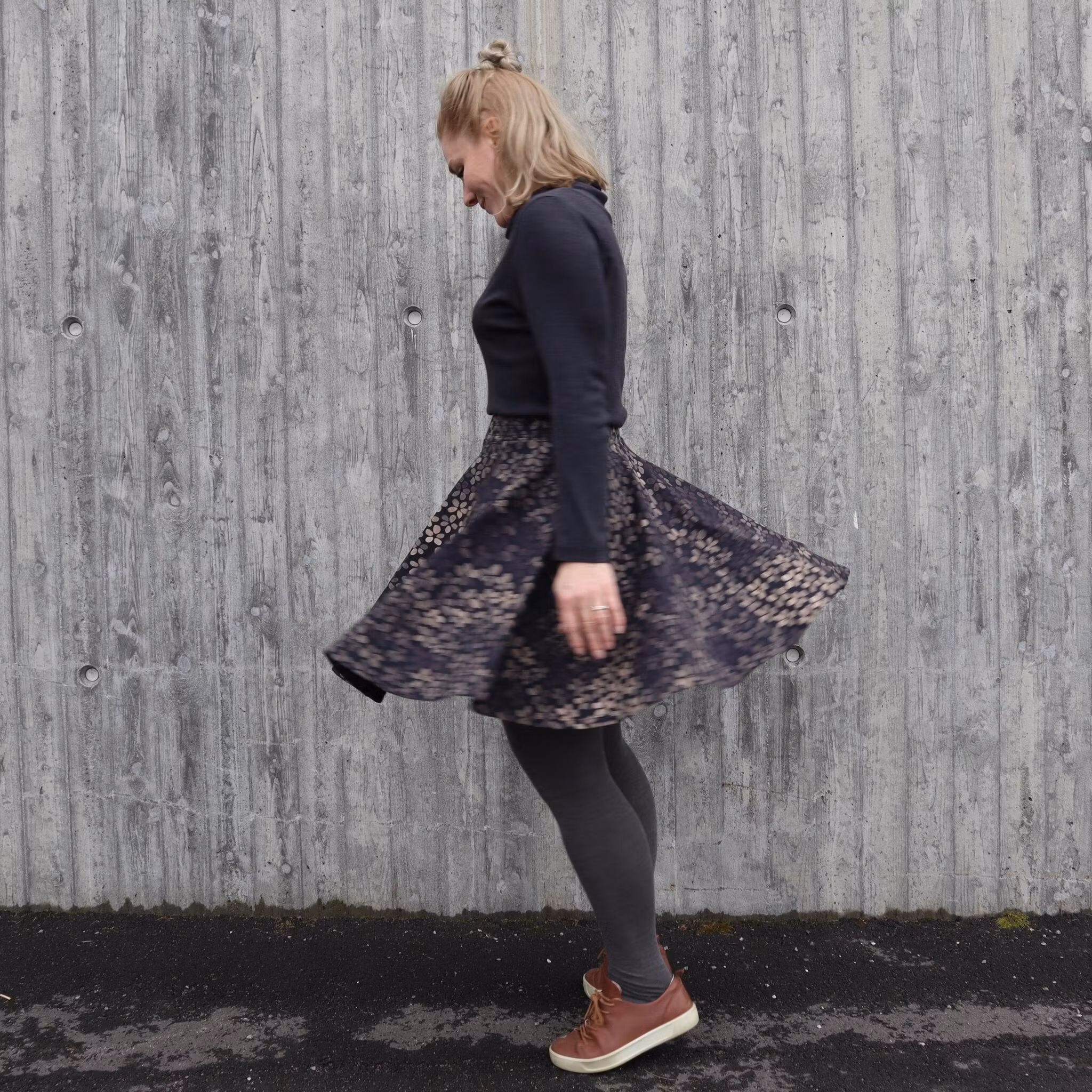 Linningen til dette skjørtet kan også brukes på mønstrene Victoriakjolen og Jerseykjole med sving, for å lage skjørt av et av de kjolemønstrene. Du kan også snu på det, og bruke Sol Sirkelskjørt for å lage kjole med helsirkelskjørt av enten Victoriakjolen eller Jerseykjole med sving.