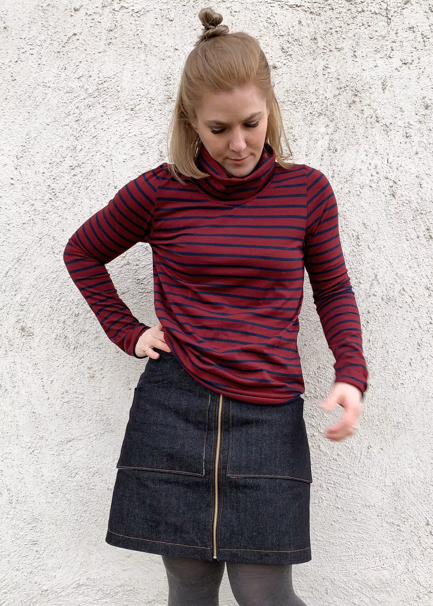 Et enkelt og allsidig basisplagg, med mange ulike variasjonsmuligheter. I halsen kan du velge mellom: Rund hals, V-hals, høy hals, ekstra høy hals, vid hals, eller liljehals. Du kan også velge mellom lange ermer, 3/4 lange eller T-skjorte-ermer.